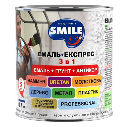 Емаль-експрес "SMILE" Срібляста Молотковий ефект 3в1 0,7кг/6шт